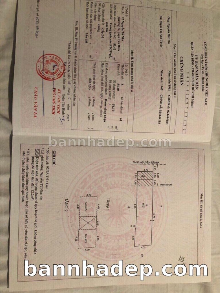 Bán nhà 22 Nguyễn Tử Nha phường 01 quận Tân Bình