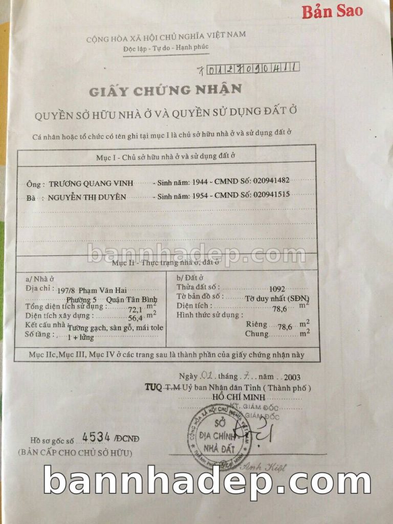 Bán nhà 197/8 Phạm Văn Hai phường 05 quận Tân Bình
