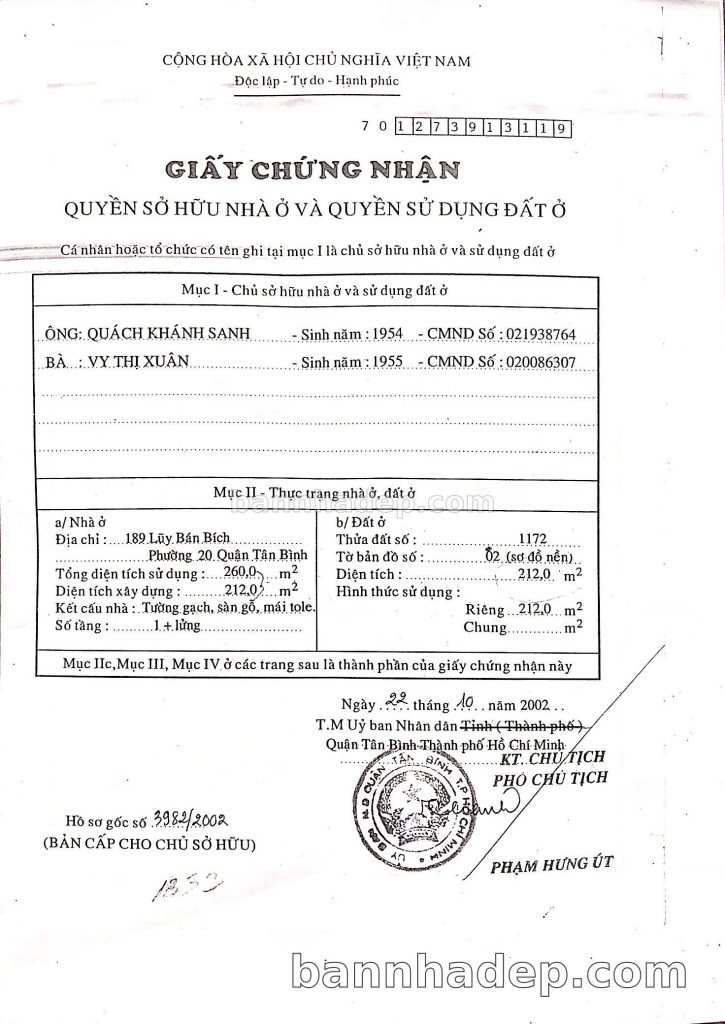 Bán nhà 189 Lũy Bán Bích phường 02 quận Tân Bình