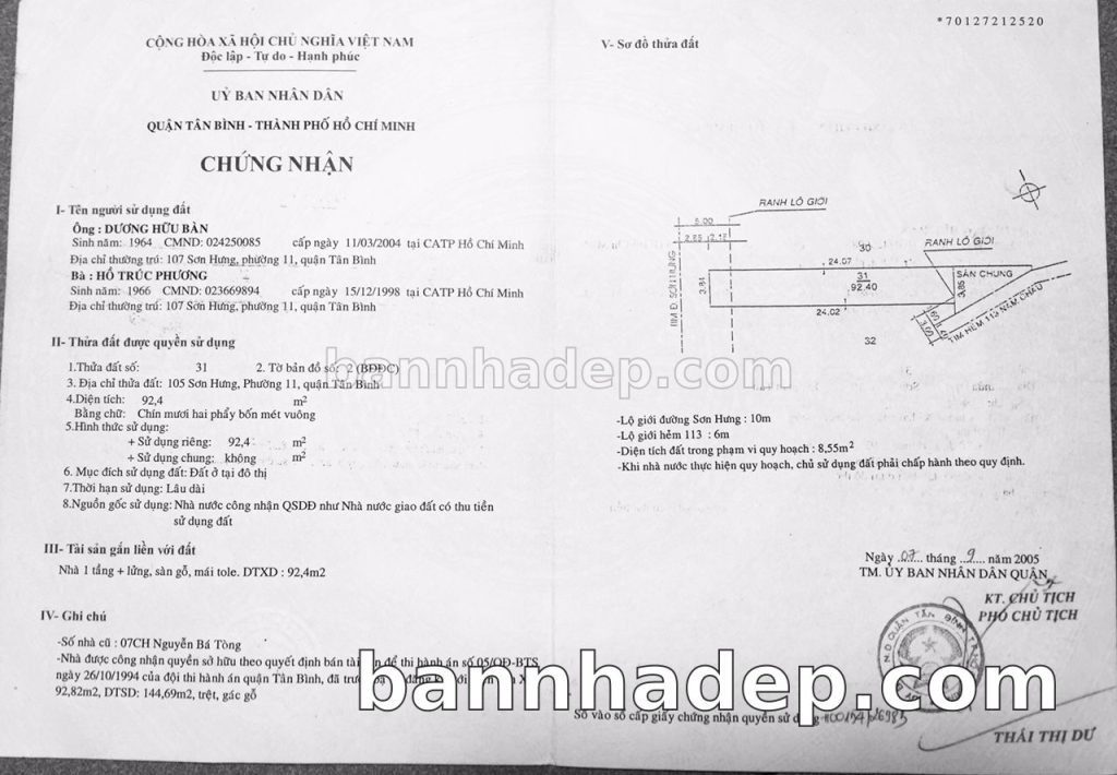 Bán nhà 105-107 Sơn Hưng phường 01 quận Tân Bình