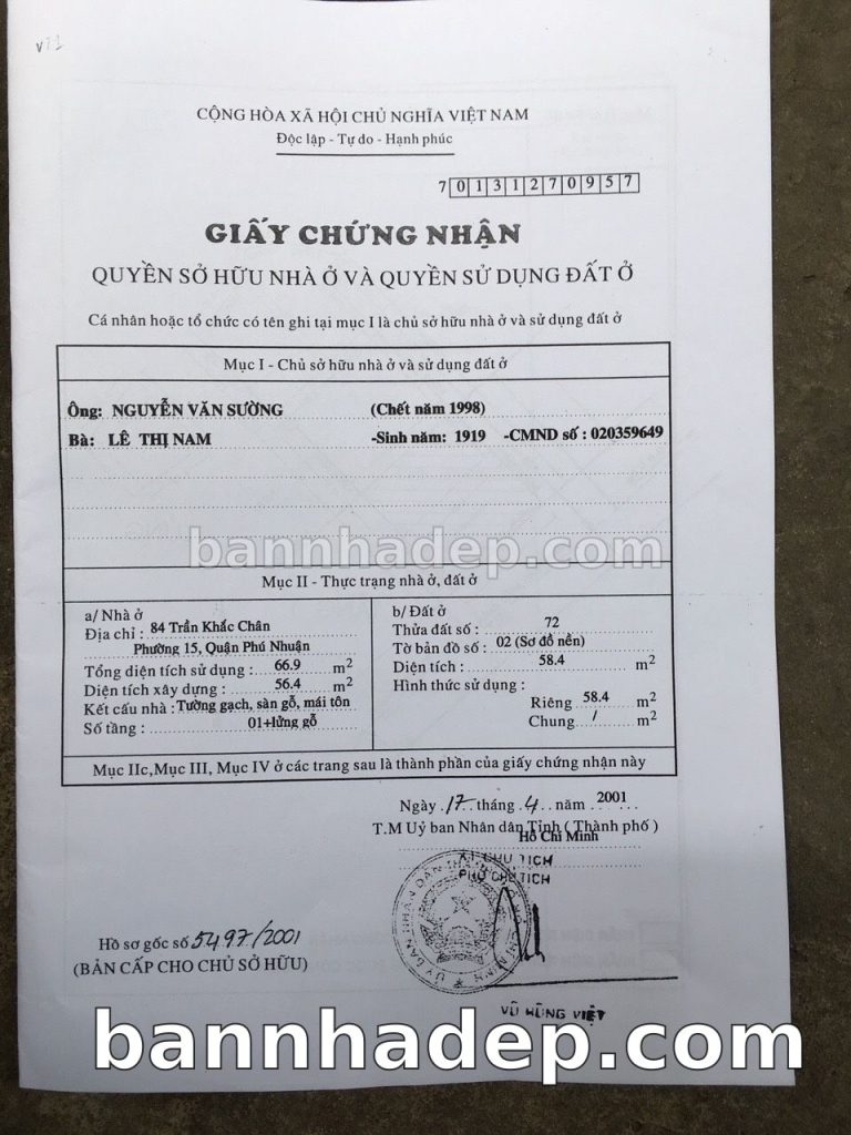 Bán nhà 86 Đặng Văn Ngữ phường 01 quận Phú Nhuận