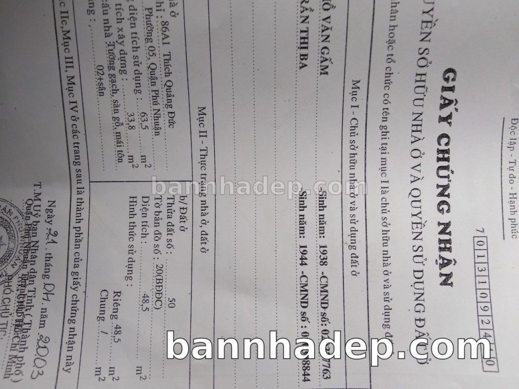 Bán nhà 86A1 Thích Quảng Đức phường 05 quận Phú Nhuận